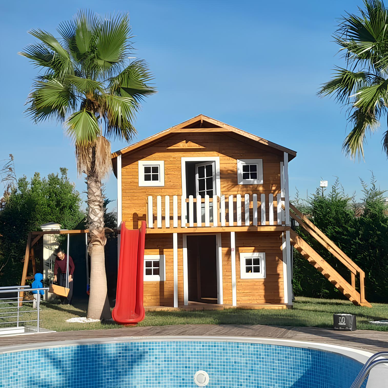 Bu ahşap oyun evi, çocuklarınızın hayal gücüyle şekillenen, mutluluğun inşa edildiği küçük bir dünyadır.